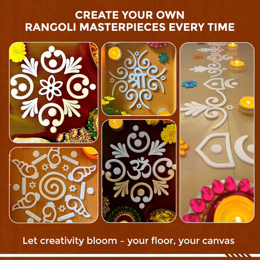 Varnika by Welburn Veda&Co® Reusable Rangoli Kit (120 Piece) for Diwali Decoration, Navratri & Pooja & Floor Decor | Indian Festive Floor Art for Festive Gifting | Washable DIY Rangoli Set